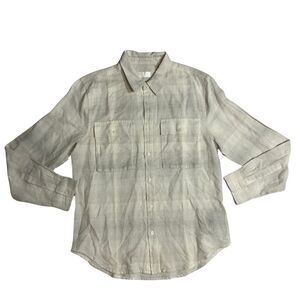 7 For All Mankind Men's Button Up Linen Shirt Size Large Long Sleeve Pockets