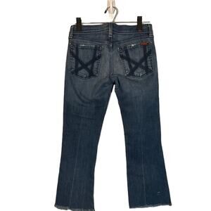 7 For All Mankind Mia Blue Cotton Blend Raw Hem Boot Cut Denim Jeans Women Sz 27