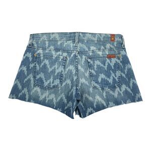 7 For All Mankind Mid Rise Ikat Print Cut Off Jean Shorts 27 Blue Zig Zag Denim