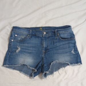 7 For All Mankind Mid Rise Raw Hem Boyfriend Shorts, Color Light Wash Size 30