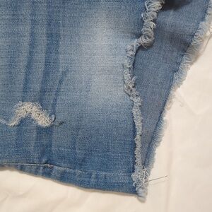 Stylish denim blue women's shorts with a trendy distressed look. Perfect for casual outings!