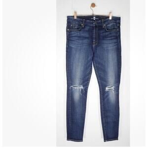 7 For All Mankind Mid Rise Skinny With Knee Holes in Marie Vintage Blue - 30