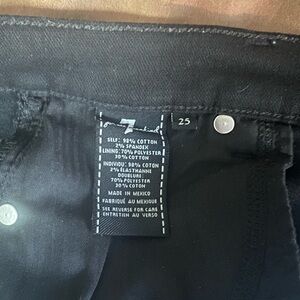 7 For All Mankind Mid-Rise Cutoff Shorts in Black. Size: 25. Materials: Self- 98% Cotton, 2% Spandex. Lining- 70% Polyester, 30% Cotton. Made in Mexico. Loose, relaxed fit. Selling because they’re a little too big for me, I’m a true 24.