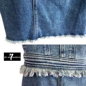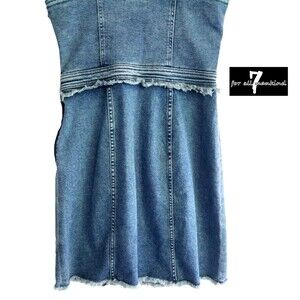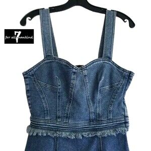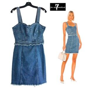 7 For All Mankind |NEW| MUSE Frayed Fitted Vintage Denim Dress S. This super cute mini is the easiest denim look you'll pull off. Frayed edges at the waist and hem give it a fun, casual vibe, while the sweetheart bustier-style upper gives it the perfect little touch of sexy. See pics for details and the measurements provided below/the Table Chart in the pics to size this dress.