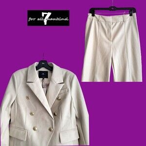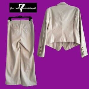 7 For All Mankind |NEW| Old Money Faux Leather 2-Piece Pantsuit M. Elevate your look with the suave, contemporary style of a faux-leather double breasted jacket topped with standout buttons and wide leg cropped pant suit set. You will love it! See pictures for all details and the Table Chart in the pics to size this suit set. Specific measurements are provided upon request.