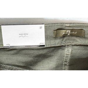 7 For All Mankind NWT Ankle Skinny Jeans Olive Green Mid Rise Denim Jeans Sz 27