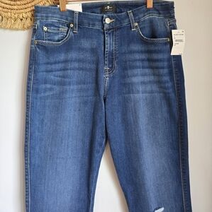 7 For All Mankind, New, Kimmie Straight Form Fitted Distressed Jeans, Size 32
