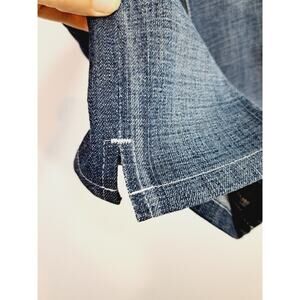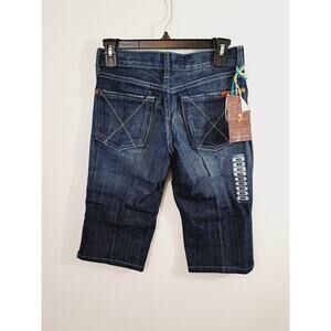 Made of 100% cotton denim fabric, these jeans are of premium quality. The fabric wash is dark, making them a perfect fit for any season, whether it's summer, fall, or spring. They are a vintage collection with a fit that is comfortable and regular, ensuring that you look and feel great. The inseam measures 14 inches, making them a perfect fit for women of all sizes. These are new deadstock jeans from the early 2000's they are a short Dojo style that goes just past the knee dependingon your hight. They have an 8" rise.