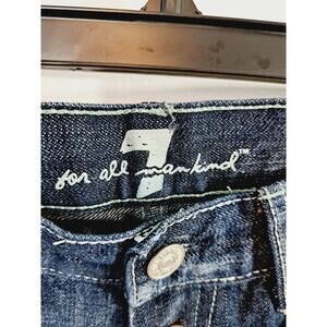Upgrade your denim collection with these stunning 7 For All Mankind Capri Dojo Jeans. The jeans come in a beautiful blue color with a solid pattern and Swarovski crystal accents, making them perfect for any occasion. They feature a 5-pocket design, zip and button closure, and a low rise that measures between 6.5-8.5 inches.