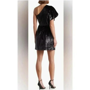 7 For All Mankind One Shoulder Dress Metallic Velour Black Womens Size Med NWOT