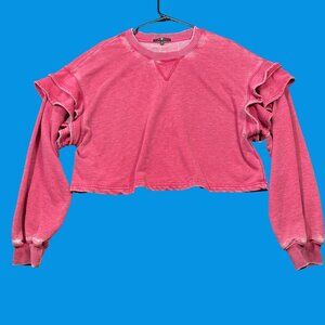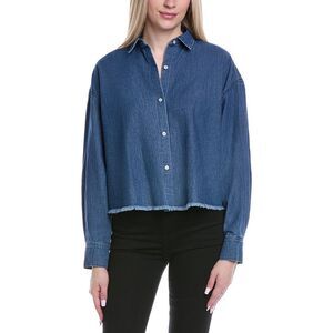 7 For All Mankind One Shoulder Ruffle Chambray Top