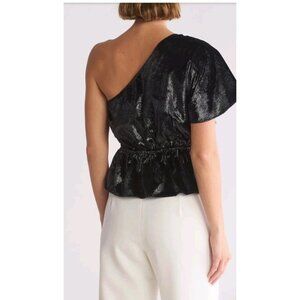 7 For All Mankind One Shoulder Ruffle Top Womens Size Small Black
