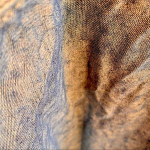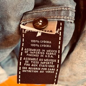 This rare find is 100% Lyocell featuring a white paint wash with metal and mother of pearl buttons and has a gorgeous color shifting effect when the shirt is being worn (see last picture for example)