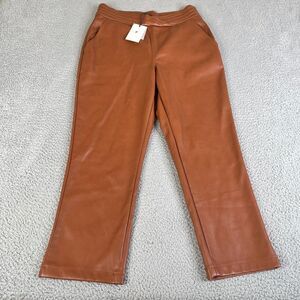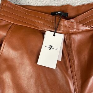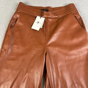 7 For All Mankind Pant Women L Brown Faux Leather Vegan High Rise Straight Leg