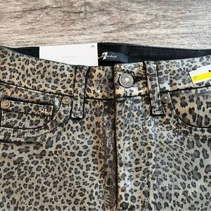 New with Tags Women’s 7 For All Mankind Coated Metallic Bronze, Brown and Black Leopard Print High Waist Ankle Super Skinny Pants in Size 24