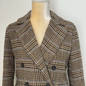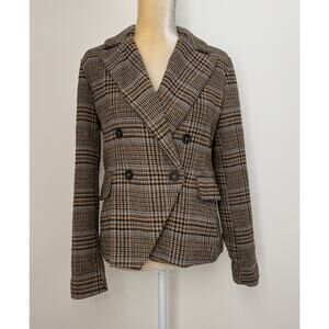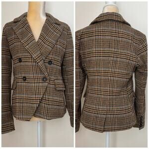 7 For All Mankind Plaid Classic Blazer Jacket Size M Brown Wool Blend Lined