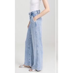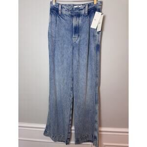 7 For All Mankind Pleated Trouser Jean Abyss High Rise Wide Leg Sz 24 $278 NWT