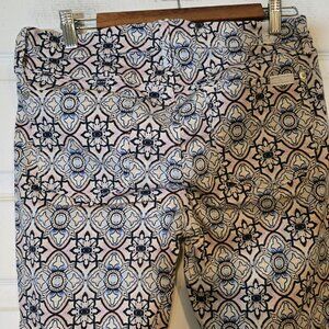 7 For All Mankind Pocket Jeggings White Blue Geometric Zip Button Skinny Jeans