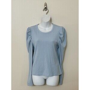 7 For All Mankind Puff Sleeve Ribbed Crew Neck Baby Blue Size M EUC!!!