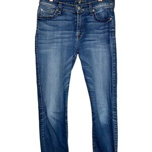 7 For All Mankind Raw Hem Ankle Skinny Jeans Size 27 Medium Wash Mid Rise
