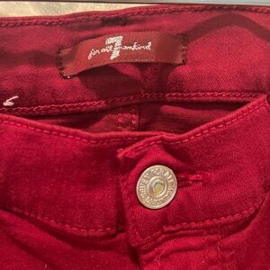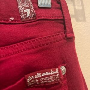 These vibrant red skinny jeans from 7 For All Mankind offer a sleek and modern fit. Crafted from high-quality denim, they provide a bold and stylish alternative to traditional denim. The deep, saturated color ensures a standout look for any occasion.