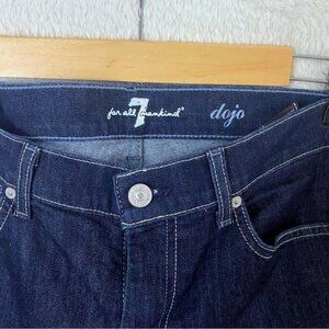 7 For All Mankind Dojo flare jeans. Rhinestone Crystal pockets. Dark wash. Raw hem. No missing rhinestones, I’m like new condition.