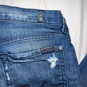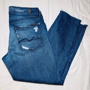 7 For All Mankind Roxanne Cropped Raw Hem Low Rise Jeans Distressed