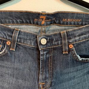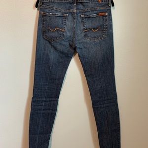 7 For All Mankind Roxanne skinny jeans in dark wash. Size 27. Very comfortable jeans in great condition. Love the darker wash. They fit true to size. They hit at the ankle - I’m 5’8” for reference on length.