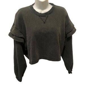 7 For All Mankind Ruffled Shoulder Crop Sweatshirt Sz. S Gray Raw Seams Casual