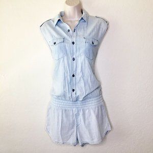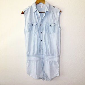 7 For All Mankind S Chambray Romper Light Blue Jea