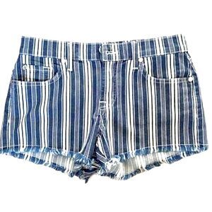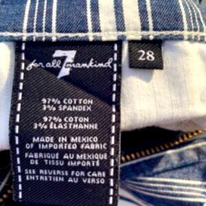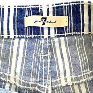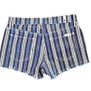 7 For All Mankind Shorts Blue & White Striped Raw Hem Stretch Denim Size 28