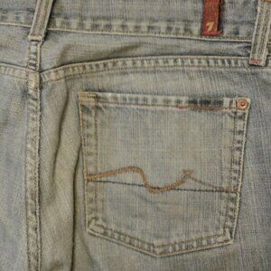 7 For All Mankind Size 30 x 32 Jeans Mens Bootcut Blue Denim Distressed