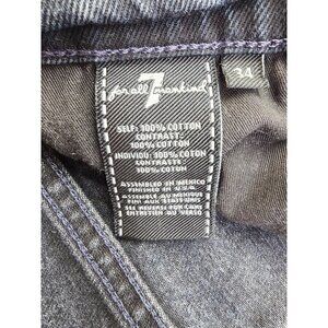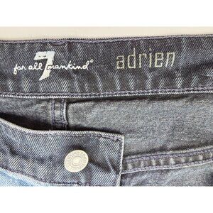 The product is a pair of 7 For All Mankind men's jeans in size 34X33. These Adrien Two Tone Blue Black denim jeans feature a logo tag and a 5-pocket design. The jeans have a mid-rise fit, straight leg style, and are made of cotton fabric with a dark wash. They are machine washable and suitable for all seasons. The denim jeans are designed with a zip and button closure, making them a stylish and versatile option for everyday wear.