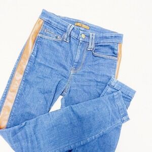 7 For All Mankind Skinny Jeans Leather Accent Stripe SZ25