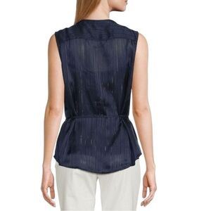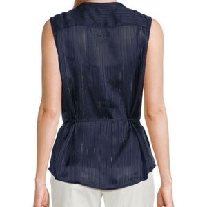 Keywords: 7 For All Mankind, Sleeveless Top, Ruffle Blouse, Tie Waist, Navy Blue Top, Striped Blouse, Womens Fashion, Casual Blouse, Elegant Top, Summer Top, Office Wear, Date Night Top