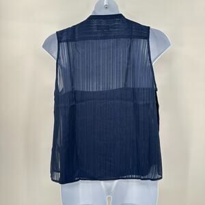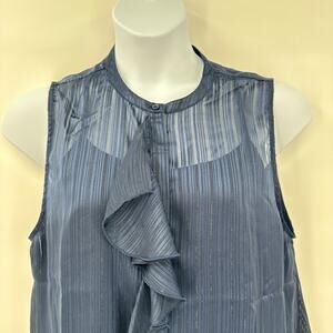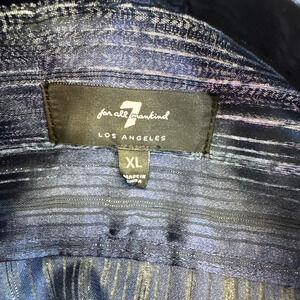 7 For All Mankind Sleeveless Shirt XL Tank Top Sheer Overlay Blue Metallic