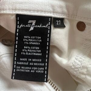 7 For All Mankind Slim Kick Jeans in White with Neon Pink Piping