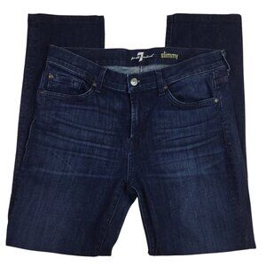 7 For All Mankind Slimmy Straight Leg Jeans Mens 33 Dark Wash Cotton & Spandex Blend