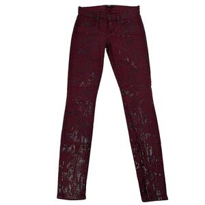 7 For All Mankind Snake Print Low Rise Skinny Jeans Burgundy/Black Size 25