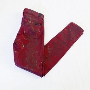 7 For All Mankind Snakeprint Denim Skinny Jeans SZ26 Dark Red
