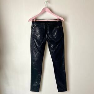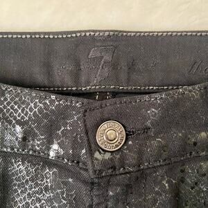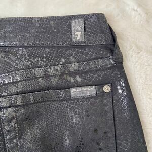Black shiny snakeskin print “the skinny” jeans by 7 For All Mankind. Great preowned condition. Size 27. Measurements in photos.