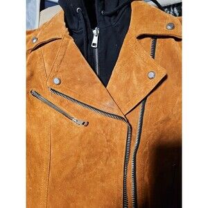 7 For All Mankind Suede Leather Moto Jacket Removeable Hood M Brown Black *Read*