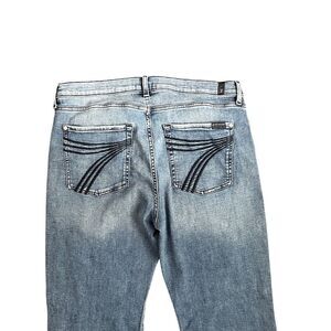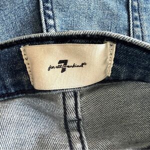 Elevate your denim game with these stunning 7 For All Mankind “Tailorlessa Dojo” Flare Jeans, size 34. Featuring a flattering mid-rise, clean light wash with subtle whiskering, and a chic wide-leg silhouette that effortlessly elongates the legs. These are pre-loved and in excellent condition — ready to become your new favorite pair of jeans. Hemmed to an inseam of approximately 30″ for an ideal fit.