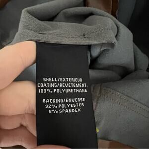In good preowned condition. Tan faux leather. Faux front pockets, real back pockets.