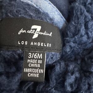 The 7 For All Mankind Teddy Jacket is a cozy and adorable hooded zip-up hoodie designed for babies aged 3-6 months. Made from soft fleece fabric with a comfortable cotton lining, this jacket features a cute bear design with bear ears and soft pockets. The full zip closure and long sleeves make it perfect for keeping your little one warm during the winter and fall seasons. Ideal for casual occasions, this basic jacket by 7 For All Mankind is a stylish and functional addition to any baby's wardrobe.