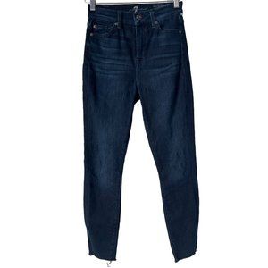7 For All Mankind The High Waist Ankle Skinny Jean Women 25 Raw Hem Trendy Casua