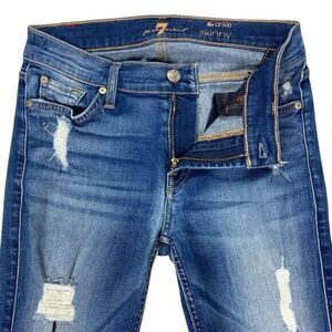 - Description: 7 For All Mankind The Skinny Ankle Jeans Womens 27 Mid Rise Ripped Distress Pant