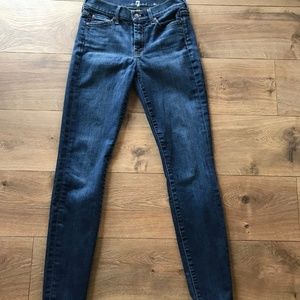 7 For All Mankind 'the Skinny' Mid-rise jeans in a medium wash. Perfect condition, size 25. 98% Cotton, 2% Spandex
