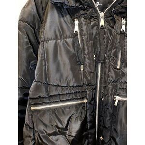 7 For All Mankind Thermal Puff Black Jacket Size Medium. Fleece lined hoodie. Four front zippered pockets. 22 armpit to armpit.