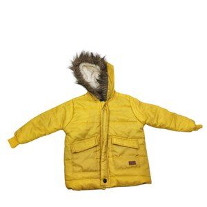 7 For All Mankind Toddler Yellow Winter Puffer Coat With Faux Fur Hood 3T NWOT